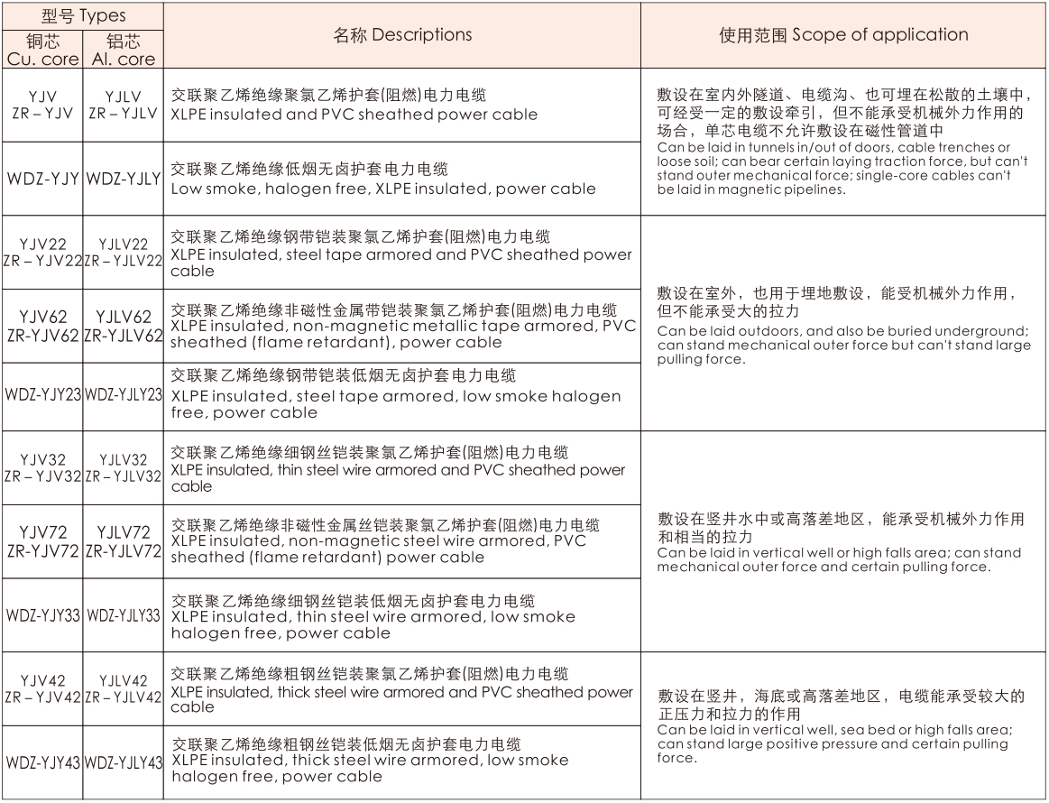 交聯聚乙烯絕緣(阻燃)電力電纜性能符合國家標準GB/T1 2706.1-2008等效采用IE60502-2004,阻燃性符合國家標準GB/T18380-2009等效采用lEC60332-2004。