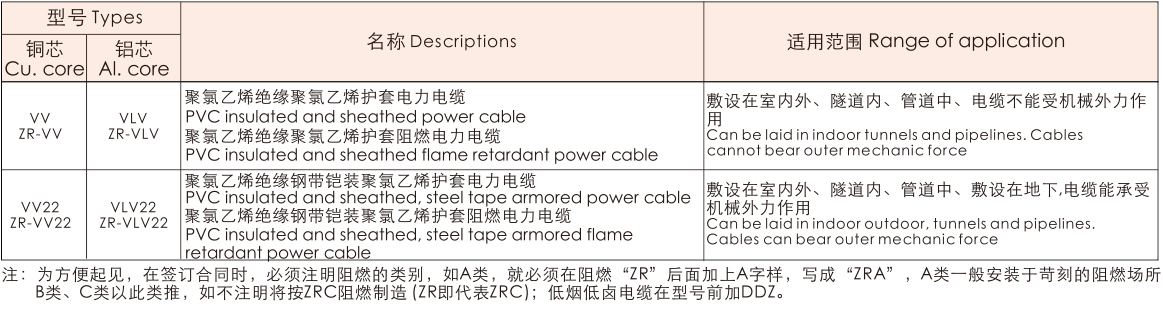 額定電壓O.6/1kV聚氯乙烯絕緣和護(hù)套(阻燃)電力電纜GB/T12706.1-2008等效采用IEC60502.2-2004,阻燃型電纜燃燒特性符合GB/T18380-2008。