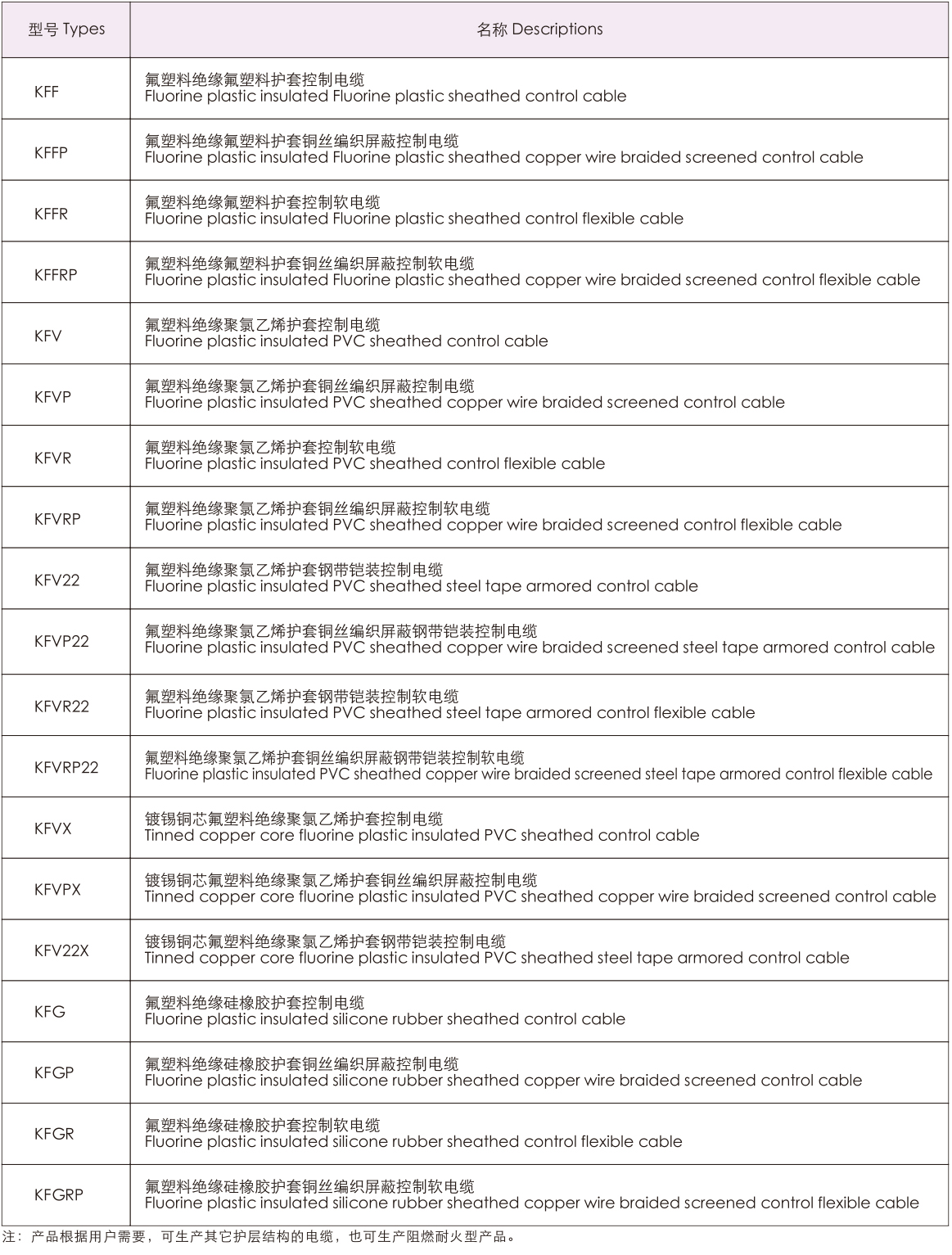 本產(chǎn)品適用干交流額定電壓450/750V及以下電器儀表的連接線和自動(dòng)控制系統(tǒng)的傳輸線,它與普通塑料絕緣控制電纜相比,絕緣采用氟塑料,產(chǎn)品具有比普通控制電纜更高的耐熱等級(jí),具有耐油、防水、耐磨、耐腐蝕性氣體、耐老化、不燃燒等優(yōu)異性能,主要適用于冶金、電力、石化等行業(yè)具有移動(dòng)耐溫等特殊要求的場(chǎng)合。