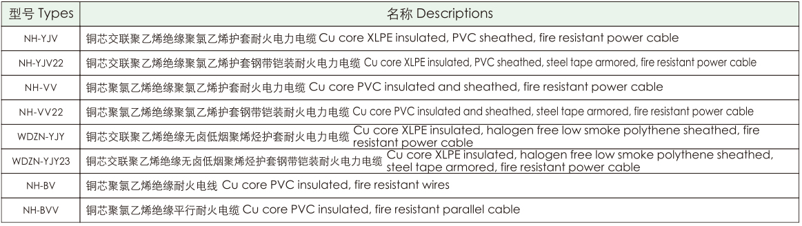 耐火電纜產品執行國家GB/T12706.1-2008、GA306.2-2007標準。耐火特性符合國家標準GB/T19216.21-2003和lEC60331:1999。
